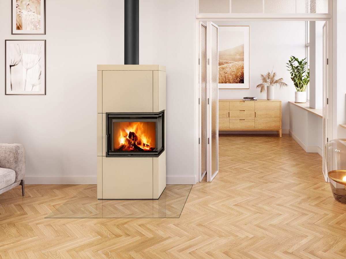 Kominek kaflowy HELIA to kompaktowy wariant modelu SOLID, zaprojektowany z myślą o mniejszych przestrzeniach. Dzięki większej szybie drzwiczek, zapewnia panoramiczny widok na płomienie, a w wersjach narożnikowych dodatkowo z dwóch stron. Jego konstrukcja bazuje na ręcznie wytwarzanych kaflach ceramicznych, które nadają wnętrzu wyjątkowy charakter.