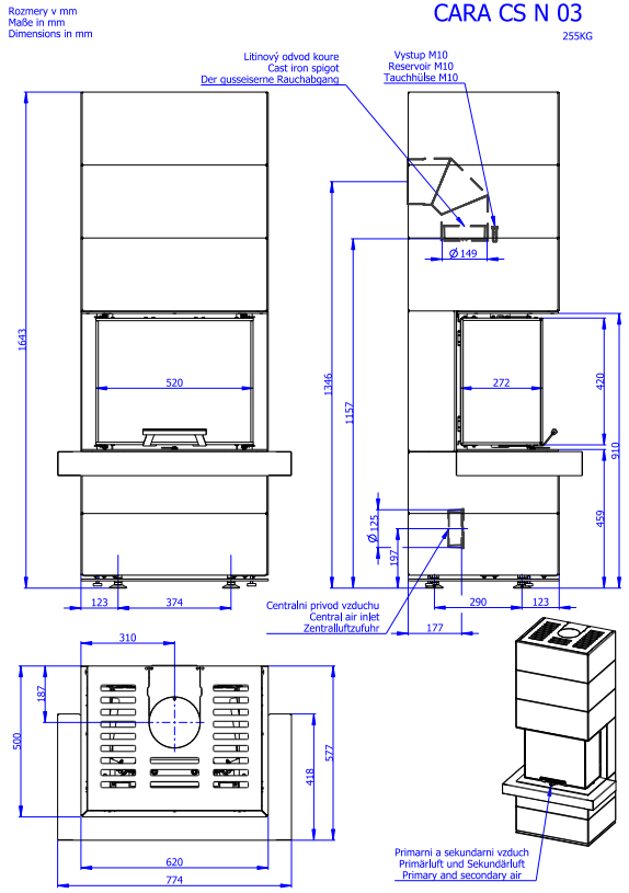 Designerskie kominki akumulacyjne CARA CS 02 i CARA CS N 03 nadają się też do domów niskoenergetycznych. Mają podnoszone do góry drzwiczki z precyzyjnym i lekkim posuwem SILENT LIFT. Komora spalania jest wyłożona kształtkami szmotowymi, w wersji standardowej bez rusztu z możliwością zmiany na wariant z rusztem. Dla optymalizacji spalania w górnej części komory spalania jest doprowadzane powietrze tercjalne. Innowacyjna komora spalania system DOUBLE SPIN zwiększa całkowitą sprawność kominka. Standardowo jest możliwe odprowadzenie spalin górą lub tyłem. Doprowadzenie powietrza wtórnego na wewnętrzną powierzchnię szyby drzwiczek zapobiega jej zanieczyszczaniu. Doprowadzenie powietrza pierwotnego i wtórnego obsługuje się za pomocą jednego elementu sterującego. Dostateczne doprowadzenie powietrza dla optymalnego spalania zapewnia system CDP – centralne doprowadzenie powietrza z zewnątrz. Kominek za dopłatą można wyposażyć w kształtki akumulacyjne, które akumulują energię cieplną a następnie oddają z powrotem do pomieszczenia jeszcze kilka godzin po wygaśnięciu ognia. Kominki linii CARA są obkładane wielkopowierzchniowym naturalnym kamieniem lub blachą z lakierowanym wykończeniem powierzchni, ekran tylnego płaszcza umożliwia umieszczenie pieca przy samej ścianie.
