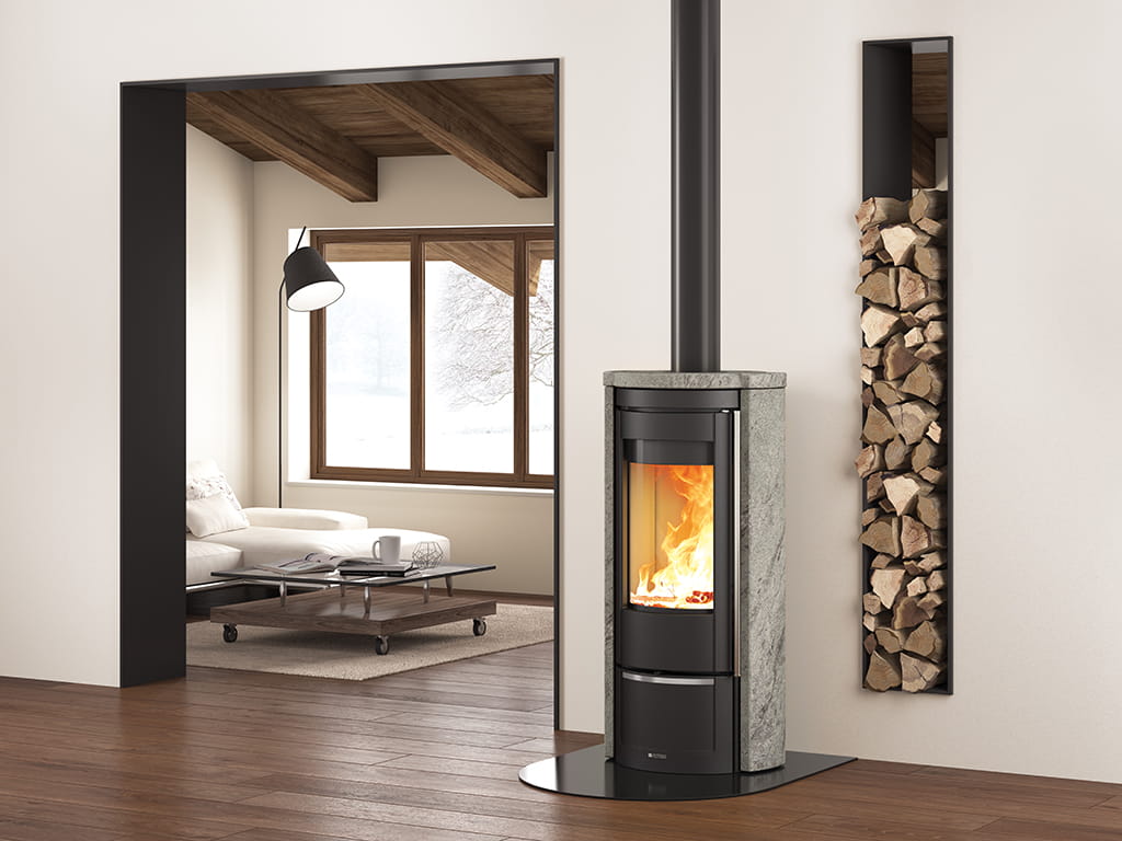Piecyk kominkowy wolnostojący na drewno. Korpus kominka, palenisko i drzwiczki wykonane z najwyższej jakości żeliwa. Obudowa zewnętrzna kominka, wykonana z najlepszego gatunku kamienia naturalnego - steatyt. Piecyk kominkowy LIU to produkt klasy premium renomowanej włoskiej firmy La Nordica. Kominek LIU posiada certyfikat ECODESIGN (ekoprojekt).