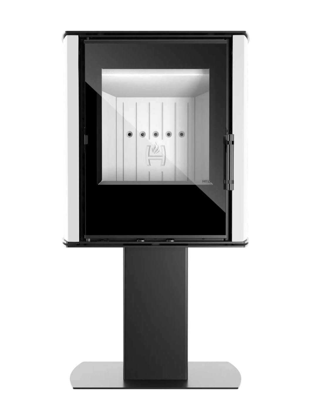 Drzwiczki do pieca wolnostojącego na nodze zostały wykonane m.in. z ceramicznego szkła kominkowego, które zachowuje swoje właściwości, w tym przede wszystkim przezroczystość do temperatury 800°C. Ponadto szkło zostało obustronnie wypolerowane, dzięki czemu gwarantuje niezwykle piękną wizję ognia. Drzwiczki są sztywne, a co za tym idzie wygodne w użytkowaniu.